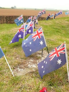 Liz and Martin did a fantastic job, under difficult conditions, to commemorate their Diggers. There was a lot of work going on around us for the ceremony tomorrow. C'est la vie! What could we do. Well, we blew everyone away is what we did!! After the two tributes, David read the Ode, Hadley stopped everyone in their tracks with the Last Post and Tom brought a tear to everyone's eye with Waltzing Matilda. It was certainly a magic moment. Chatter stopped. People bowed their heads. And I'm sure many, like I, had a tear in their eye thinking of our boys and the sacrifices that they made. I'm proud to be a Victorian on the Premier's Spirit of ANZAC Prize Tour and I'm bloody proud to be an Australian today.